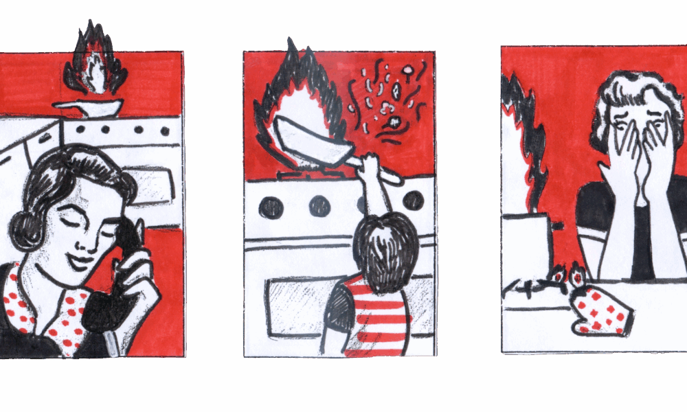 measures while cooking. The stylization of the figures and the color palette were inspired by